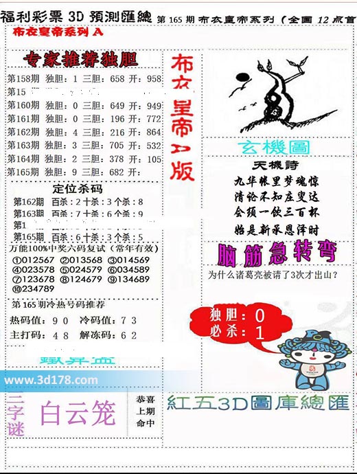 福彩3d第2022165期布衣皇帝A版布衣专家独家推荐: