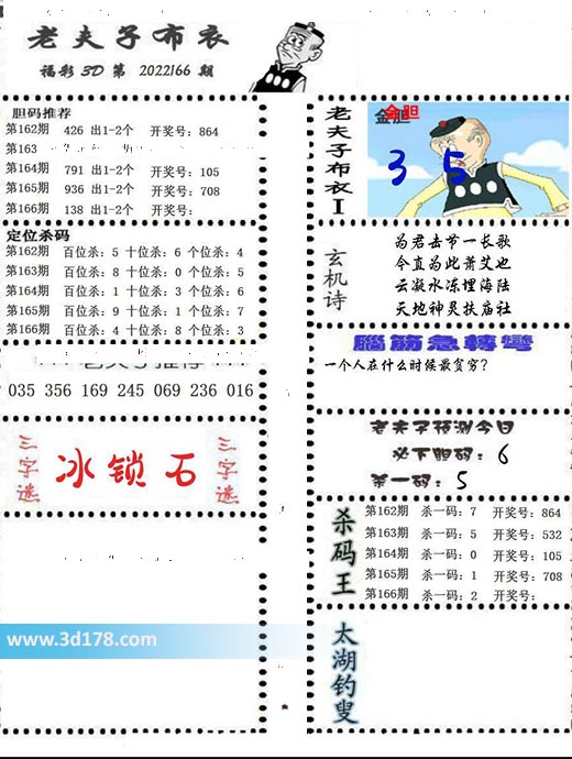 福彩3d第2022166期老夫子布衣图详情: