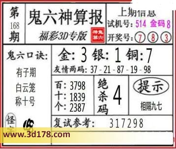 3d第22168期鬼六神算报为您推荐鬼六口诀: