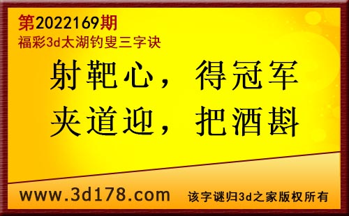 3d第2022169期太湖字谜:射靶心,得冠军,夹道迎,把酒斟