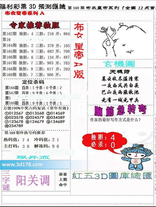 福彩3d第2022169期布衣皇帝A版布衣专家独家推荐: