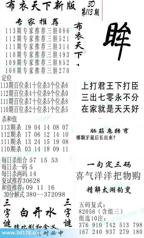 3d第2014113期布衣天下新版: