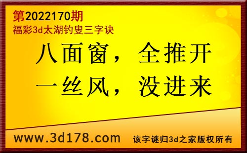 3d第2022170期太湖字谜:八面窗,全推开,一丝风,没进来