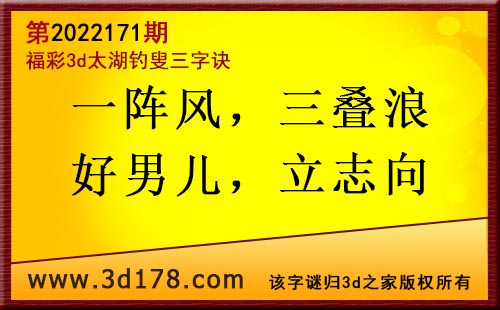 3d第2022171期太湖字谜:一阵风,三叠浪,好男儿,立志向