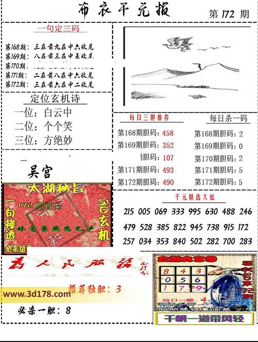 福彩3d布衣图库布衣千元报第2022172期定位玄机诗: