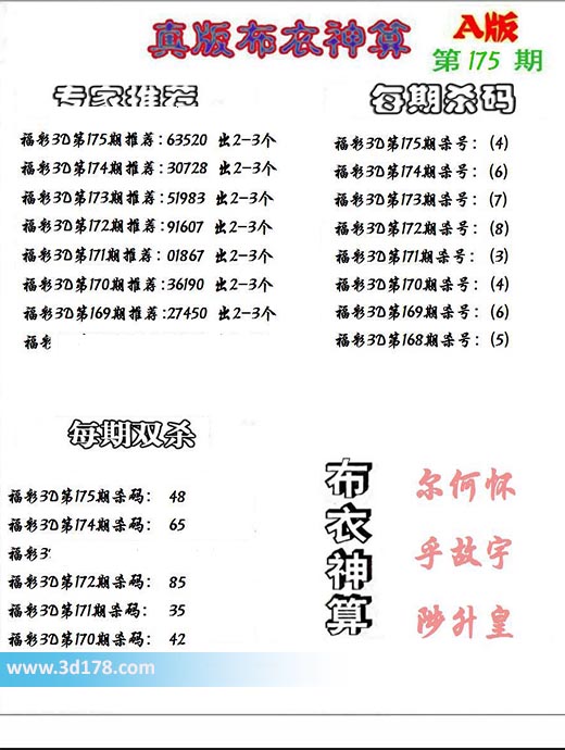 3d之家布衣图库之布衣神算图第2022175期详解: