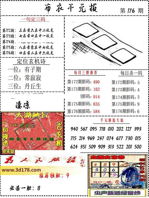 福彩3d布衣图库布衣千元报第2022176期定位玄机诗: