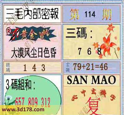 3d第2014114期三毛内部密报图:
