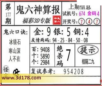 3d第22177期鬼六神算报为您推荐鬼六口诀: