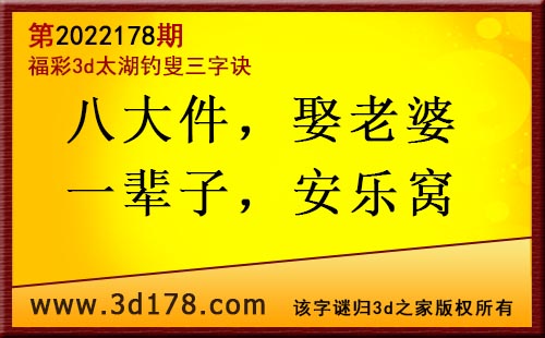 3d第2022178期太湖字谜:八大件,娶老婆,一辈子,安乐窝