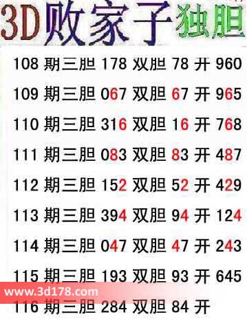 3d福彩3d之家第2014116期3d败家子独胆图: