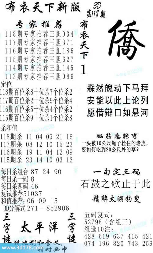 该布衣图库由福彩3D之家3D图库频道原创,仅供彩民参考,温馨提供。