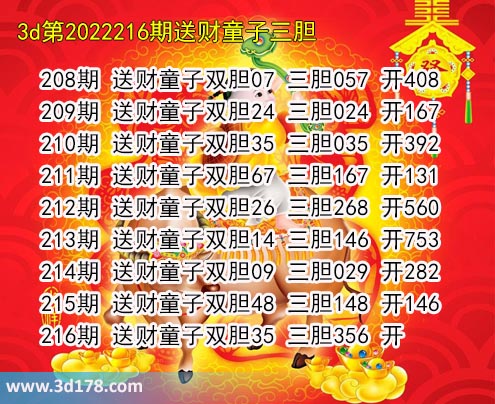 下面我们一起来回顾一下3d之家胆码图送财童子三胆近期推荐详情: