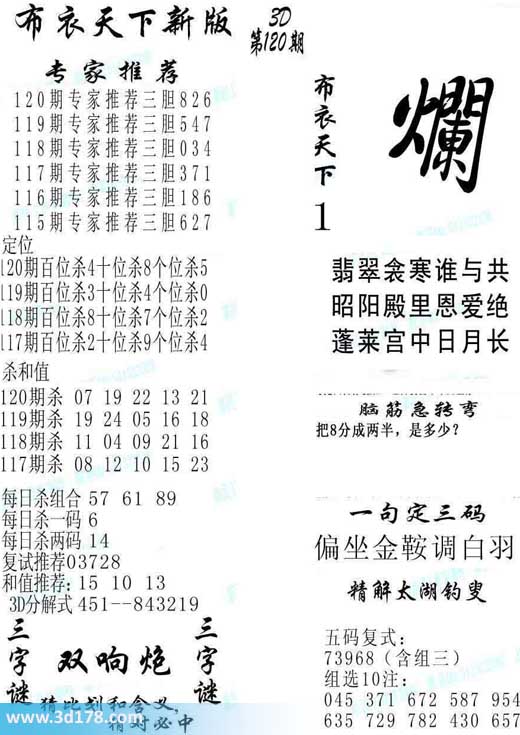 该布衣图库由福彩3D之家3D图库频道原创,仅供彩民参考,温馨提供。