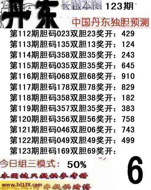 第123期 胆码169 双胆 69 奖开: