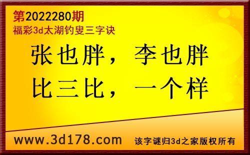 3d第2022280期太湖字谜:张也胖,李也胖,比三比,一个样