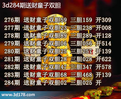 284期 送财童子双胆02 三胆025 开