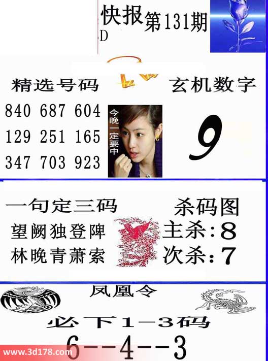 3d第2014131期凤凰快报推荐: