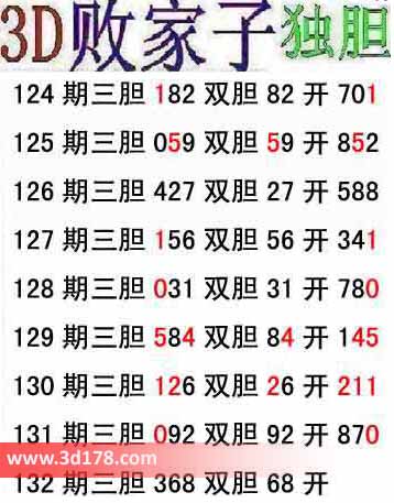 3d福彩3d之家第2014132期3d败家子独胆图: