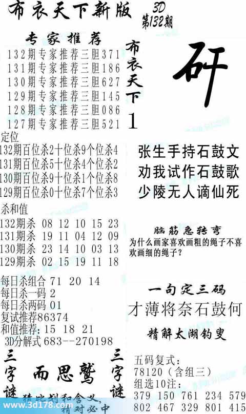 3d第2014132期布衣天下新版: