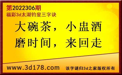 3d第2022306期太湖字谜:大碗茶,小盅酒,磨时间,来回走