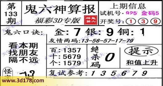 3d第2014133期鬼六神算报: