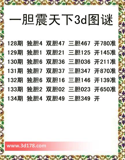 一胆震天下三胆图库由3D之家3D图库频道原创,仅供彩民参考,温馨提供。