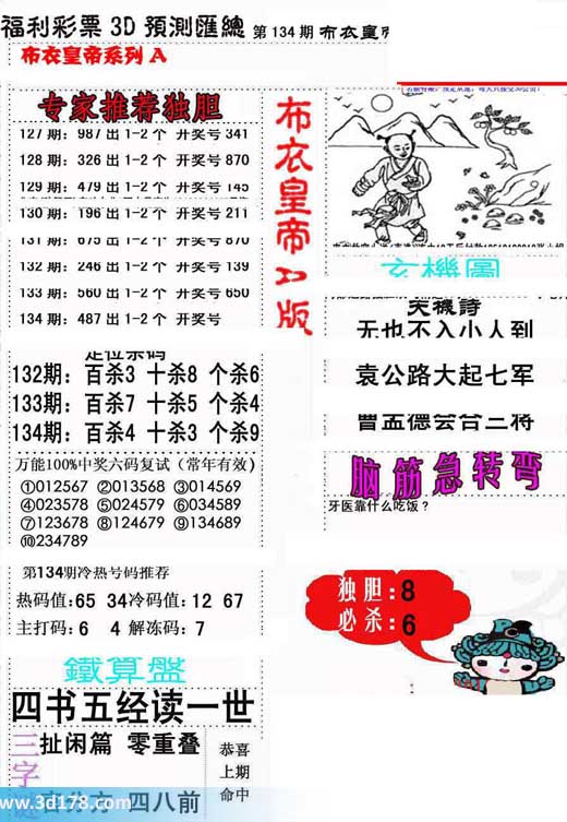 3d第2014134期布衣天下皇帝详解: