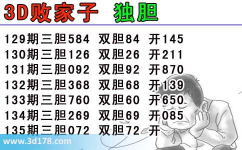 3d福彩3d之家第2014135期3d败家子独胆图: