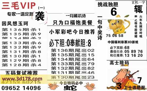 3d第2014136期三毛专家一语定胆图详解: