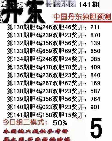 福彩3d之家第2014141期丹东双胆推荐: