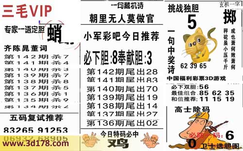 3d第2014142期三毛专家一语定胆图详解: