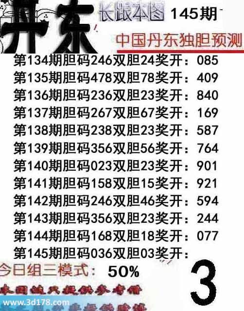 3d之家第2014145期丹东胆码图库: