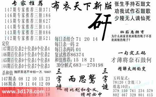 该布衣图库由福彩3D之家3D图库频道原创,仅供彩民参考,温馨提供。