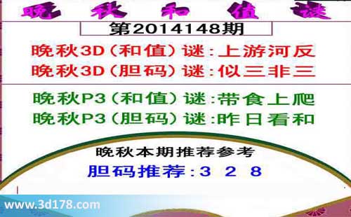 晚秋3D(和值)谜:上游河反