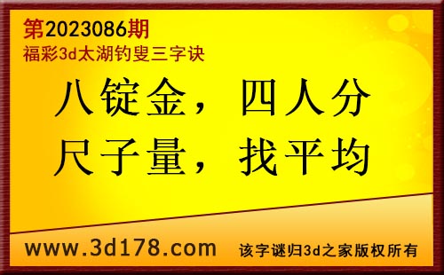 3d第2023086期太湖字谜:八锭金,四人分,尺子量,找平均