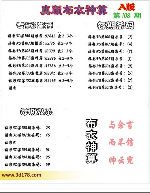 3d之家布衣图库之布衣神算图第2023108期详解: