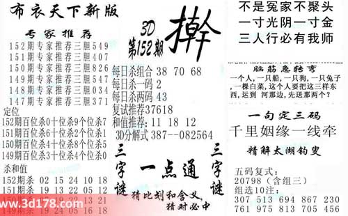 3d第2014152期布衣天下新版:
