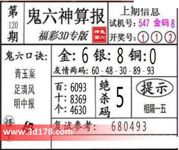 3d第23120期鬼六神算报为您推荐鬼六口诀: