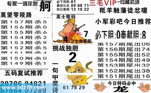 3d第2014157期三毛专家一语定胆图详解: