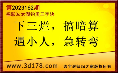 3d第2023162期太湖字谜:下三烂,搞暗算,遇小人,急转弯