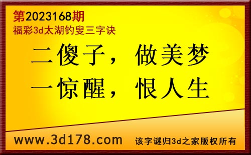 3d第2023168期太湖字谜:二傻子,做美梦,一惊醒,恨人生