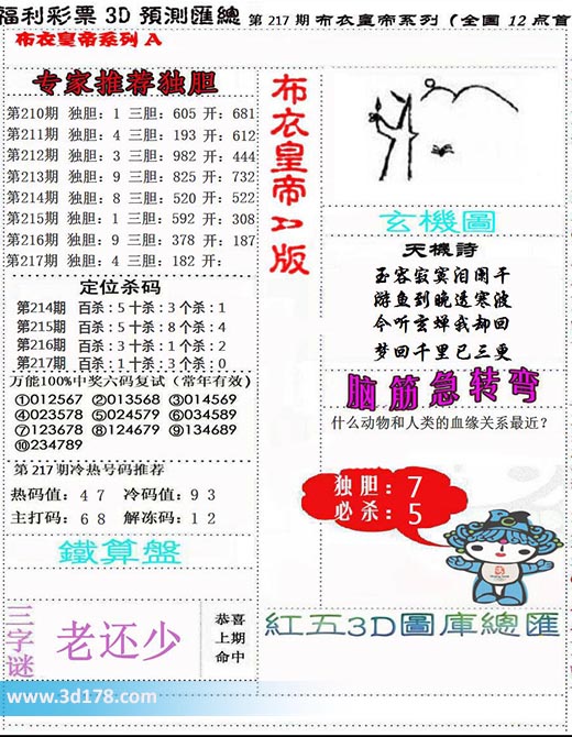 福彩3d第2023217期布衣皇帝布衣专家独家推荐: