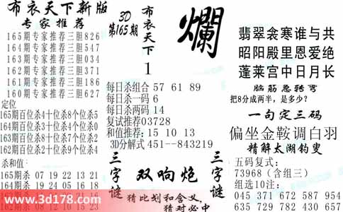 该布衣图库由福彩3D之家3D图库频道原创,仅供彩民参考,温馨提供。
