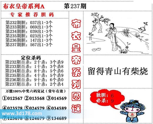福彩3d第2023237期布衣皇帝布衣专家独家推荐: