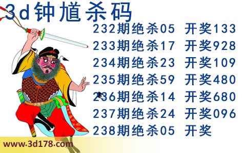 近期3d钟馗杀码的杀号详细如下:
