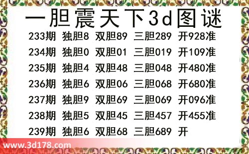 一胆震天下三胆图库由3d之家3d图库频道原创,仅供彩民参考,温馨提供。