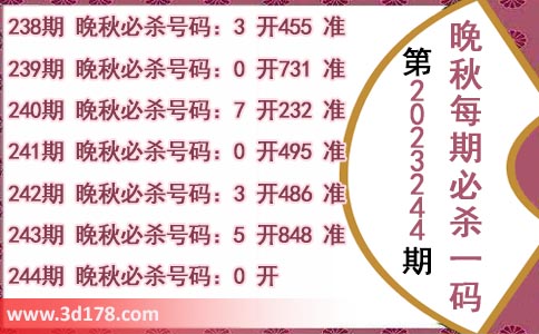 244期 晚秋必杀号码:0 开