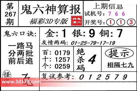 3d第23267期鬼六神算报为您推荐鬼六口诀: