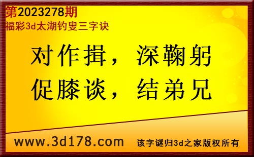 3d第2023278期太湖字谜:对作揖,深鞠躬,促膝谈,结弟兄